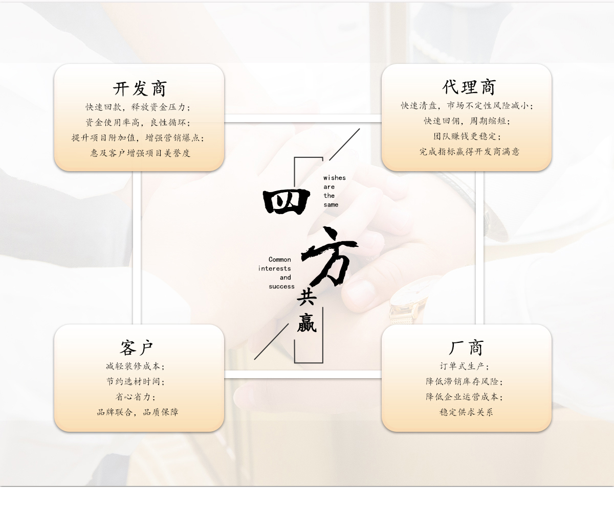 坚持“厂商、开发商、代理商、客户”四方共赢原则
